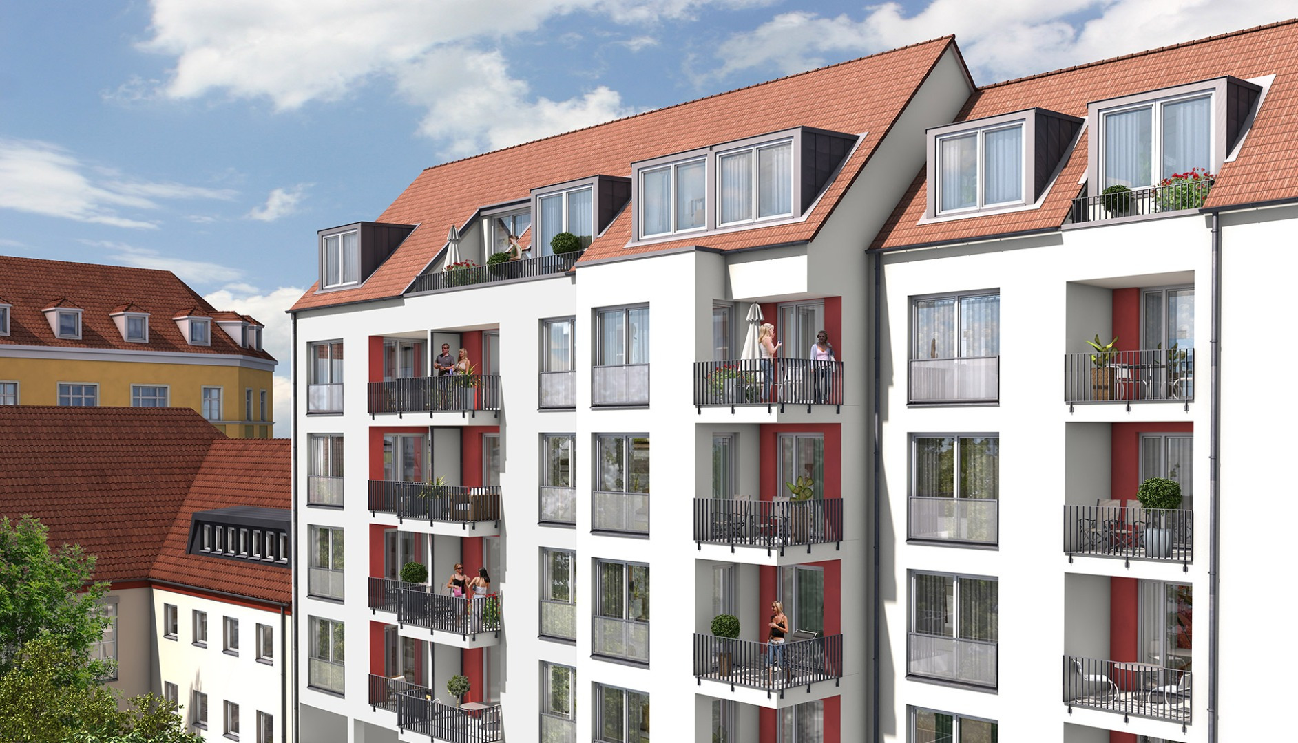 Die fünfgeschossige Wohnanlage mit Tiefgarage im Nürnberger Norden ist als Blockrandbebauung mit Satteldach konzipiert worden. Die Anlage bietet 21 moderne, helle Wohnungen in unterschiedlichen Größen, mit Balkon oder Terrasse. Die Dachgeschosswohnungen verfügen teilweise über Dachterrassen. Das Wohnhaus wurde 2019 fertiggestellt.